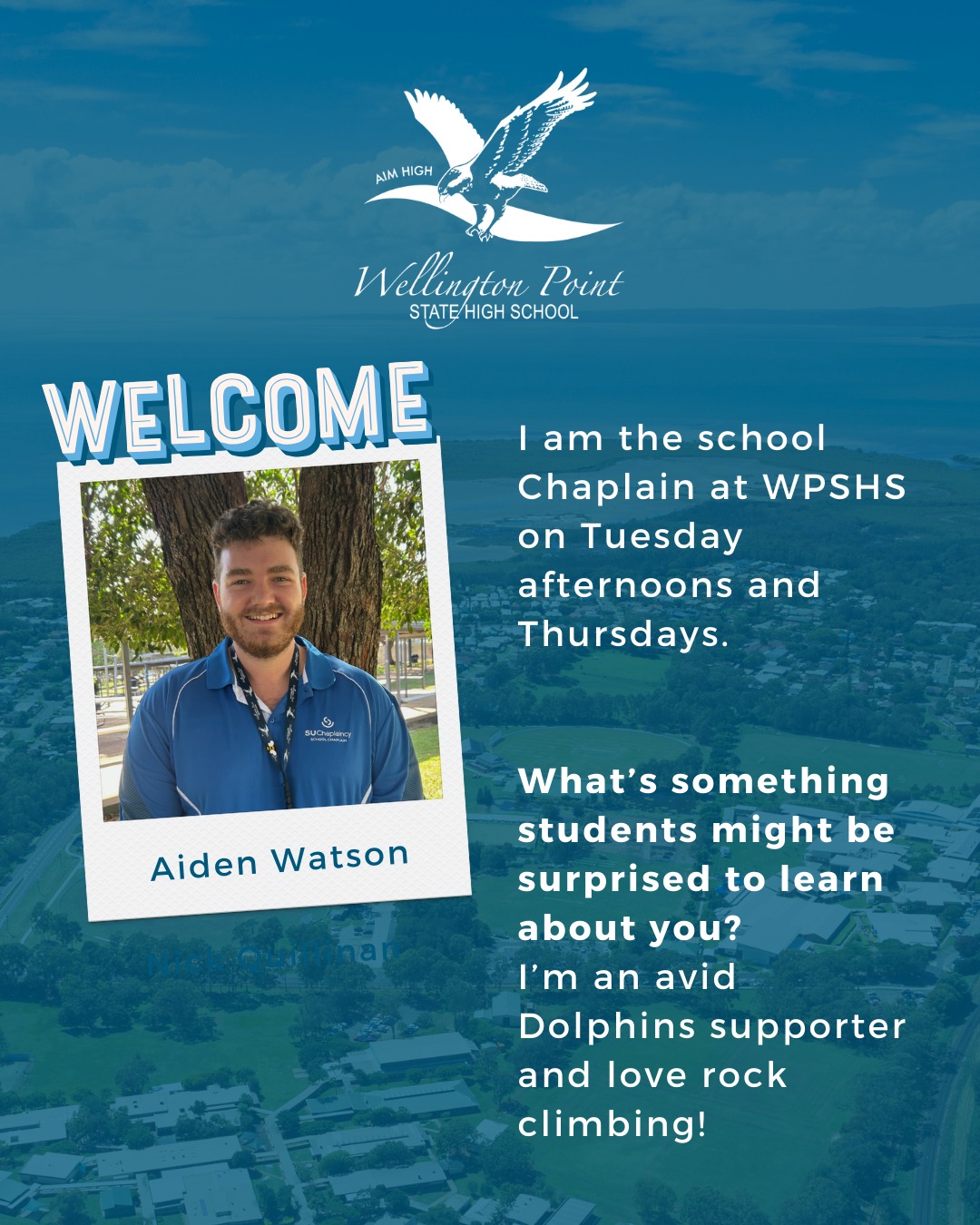 We are pleased to have Aidan Watson as our school chaplain. Aidan is available to support students on Tuesday afternoons and Thursdays, offering a safe, welcoming space for students to talk, feel heard, and build resilience. Chaplaincy support is available to all students and focuses on wellbeing, connection, and positive relationships within our school community. Don’t be afraid to stop in to C Block to visit Aidan on the days he is at Wellington Point SHS.